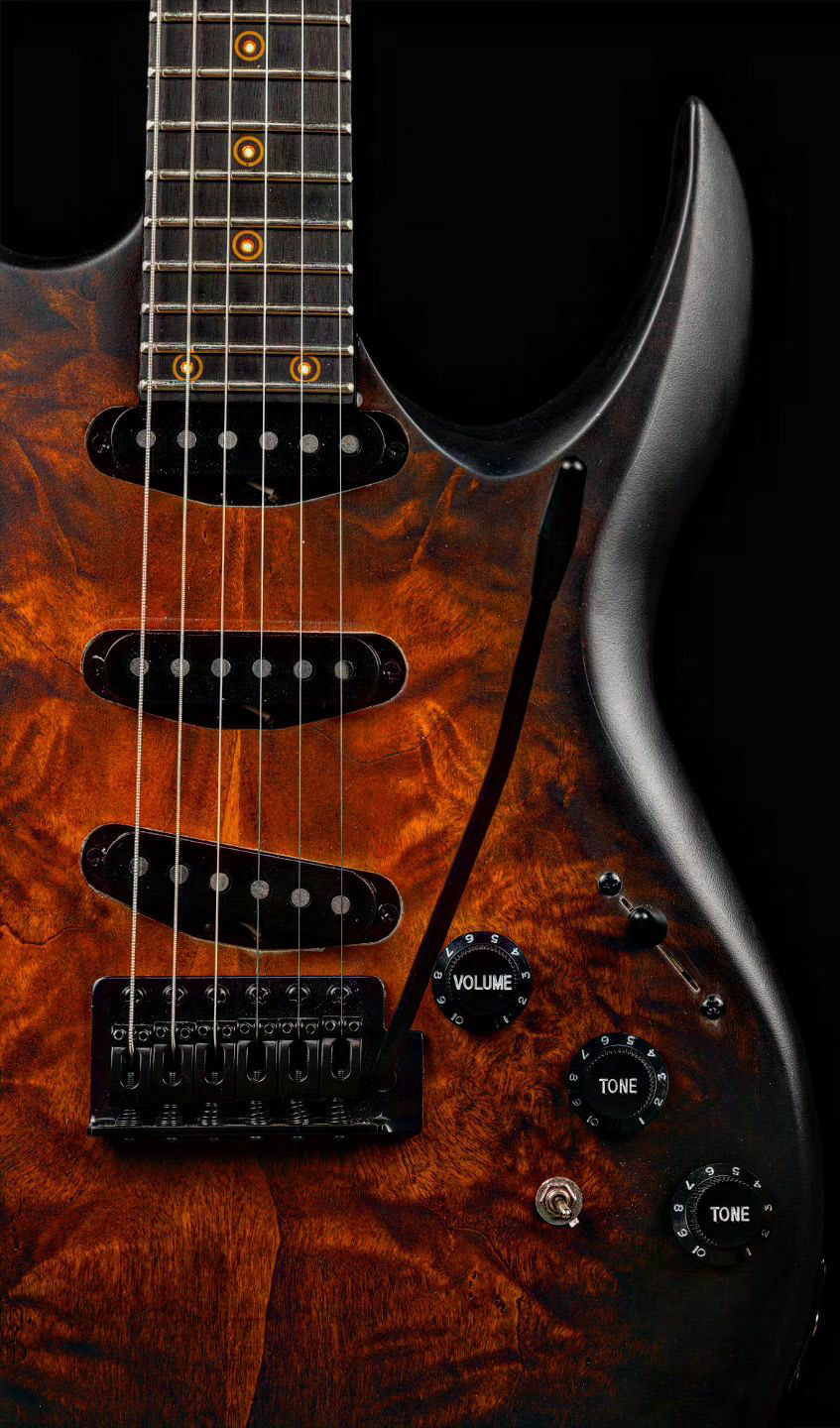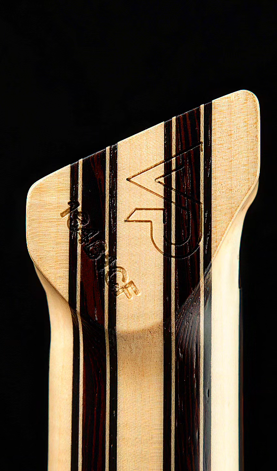 Neck: quarter sawn hard maple and wengè, asymmetrical C-shape – carbon fiber reinforcements